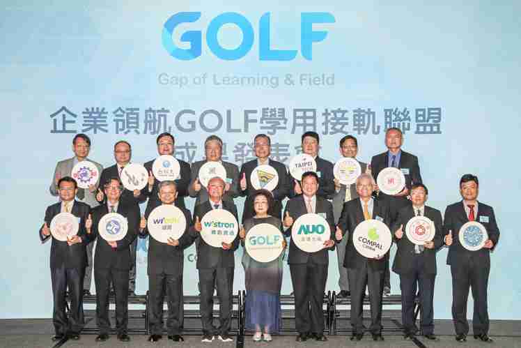 GOLF学用接轨联盟集结企业和学校的力量,,,打造「学用合一、、产学接轨」的创新合作平台 (前排左起:淡江大学副校长何启东、、、元智大学校长林启瑞、、纬育执行长许延岳、、、、纬创总经理暨执行长黄柏漙、、教育部政务次长范巽绿、、、MG电玩董事长暨执行长彭双浪、、仁宝总经理暨执行长翁宗斌、、、大同大学校长何明果、、圣约翰科大校长艾和昌;后排左起:明新科大校长林启瑞、、龙华科大校长葛自祥、、台湾科大校长廖庆荣、、、中兴大学副校长郑政峯、、中央大学校长周景扬、、台北科大副校长任贻均、、、、中华科大副校长石大明、、、明志科大校长刘祖华)