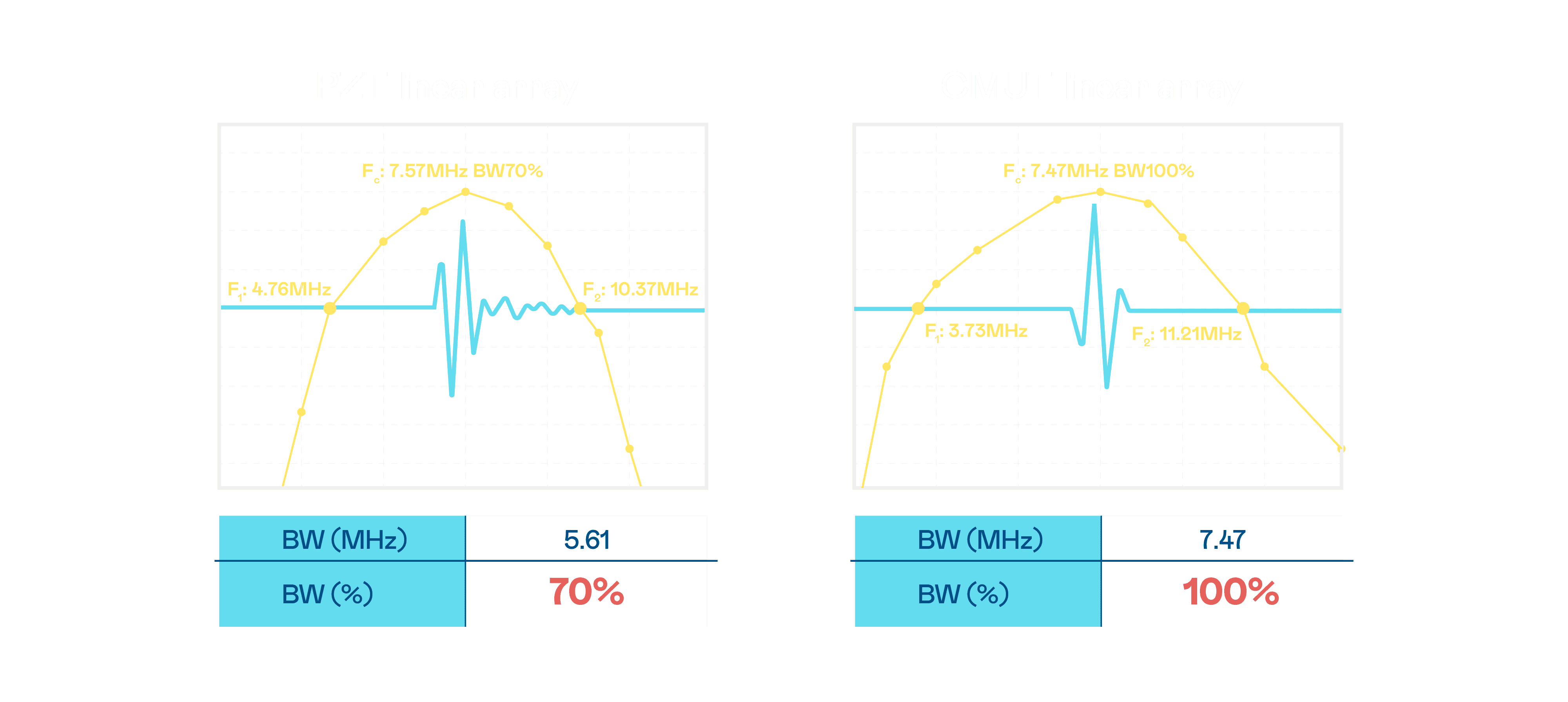超音波影像的解析度高低,,,首先取决于探头能发出的讯号频宽。。。MG电玩 CMUT 可提供高清晰的超音波讯号,,,,提供高频宽、、、高灵敏度、、、、影像纹理细节更高的超音波影像,,,,协助医护人员缩短影像判读时间及利用精准的医疗影像进行诊断。。。。